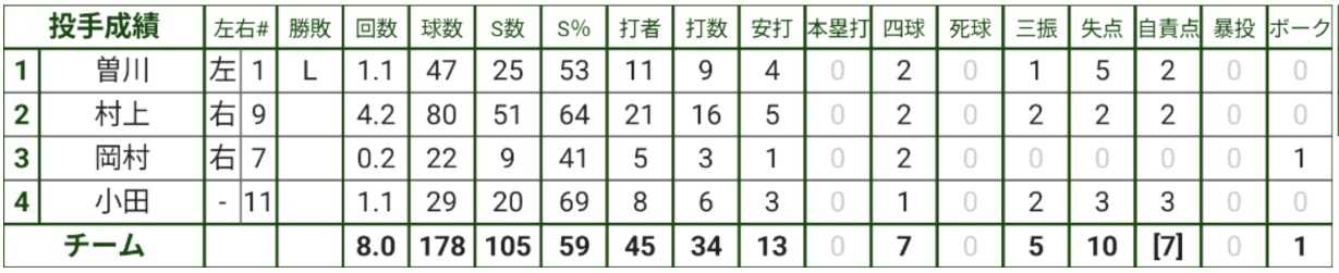 ※球数、S数、S%は目安。公式記録ではありません。