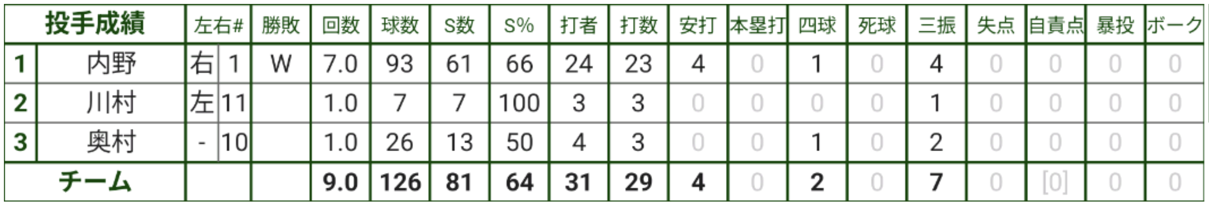 初回、2回と倉敷工打線に2安打ずつを与えてピンチを迎えた先発の内野だったが、味方の援護もあり、3回から7回まで5イニングをパーフェクトに抑える。
