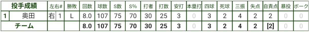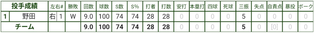 4回表に2死から内野の失策で、この試合初めての走者を許すも、後続を打ち取る。