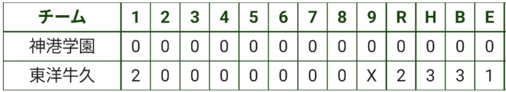 打線は2回以降、立ち直った神港学園エースの奥田を前に得点圏に走者を進められず。7回裏に初回以来の安打などで2死二、三塁とするも、追加点ならず。
