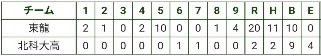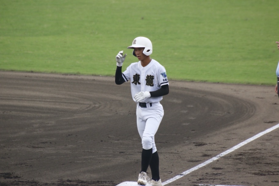 東九州龍谷は北海道科学大高の先発・長山の立ち上がりを攻め、1死二、三塁から三毛門の2ラン叩きで先制。2回表も山口の適時打でリードを広げる(東九州龍谷 3-0 北海道科学大高)。