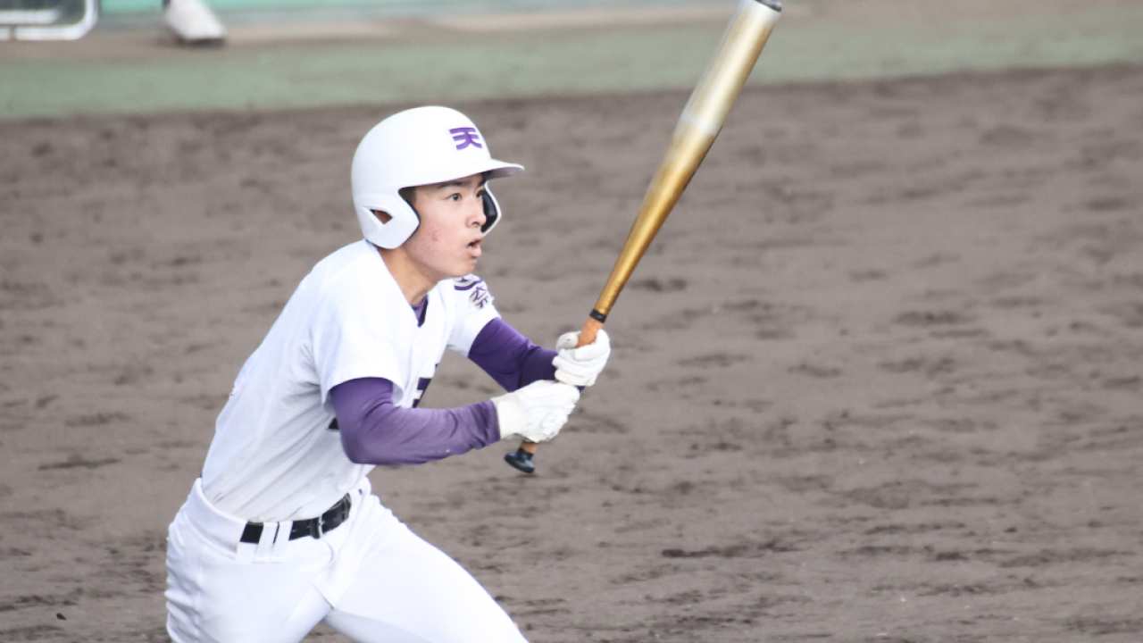 延長10回、田中の内野ゴロで1点を勝ち越すと、その裏、1死満塁から三振と外野フライで試合終了。天理が春にこの姫路で敗れたあべの翔学に粘りの逆転勝利を収め、4年ぶりの決勝に進んだ。