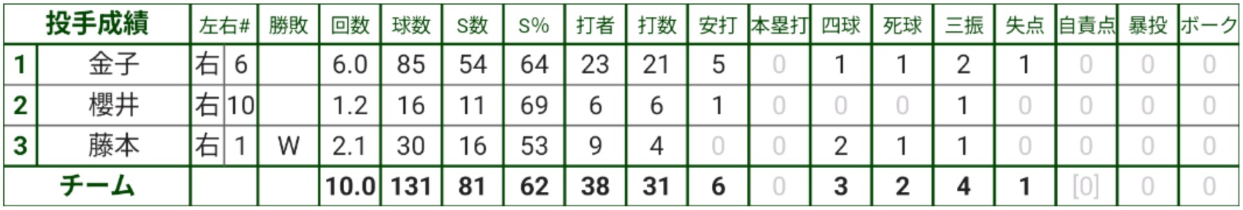 金子は6回まで最少失点で粘ると、7回から櫻井へと継投。