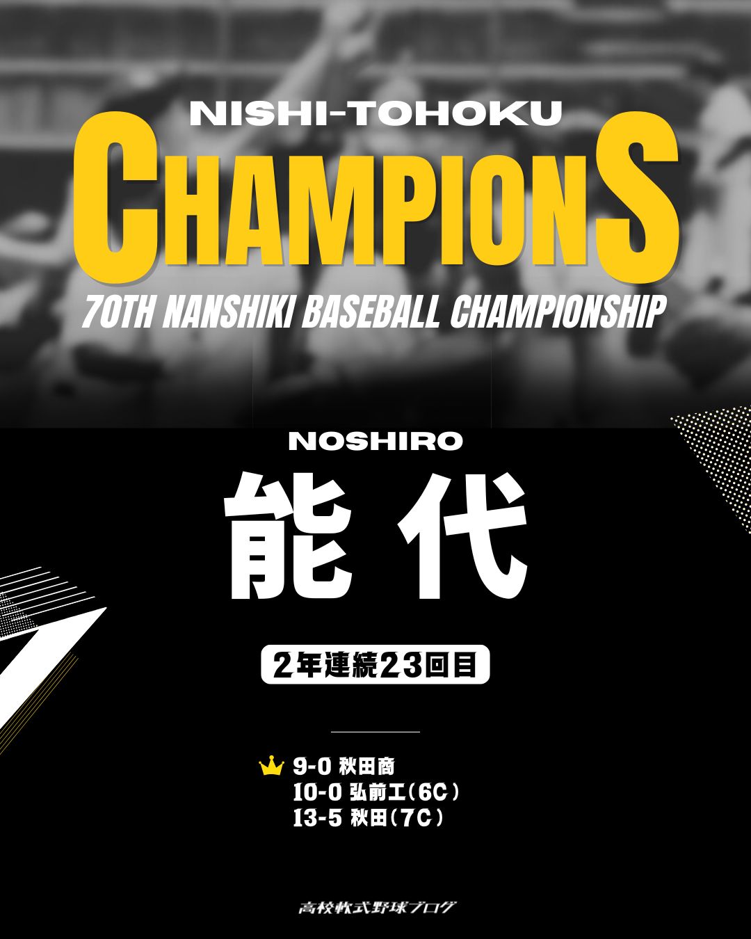 - 県代表決定戦 13-5 秋田(7回コールド)